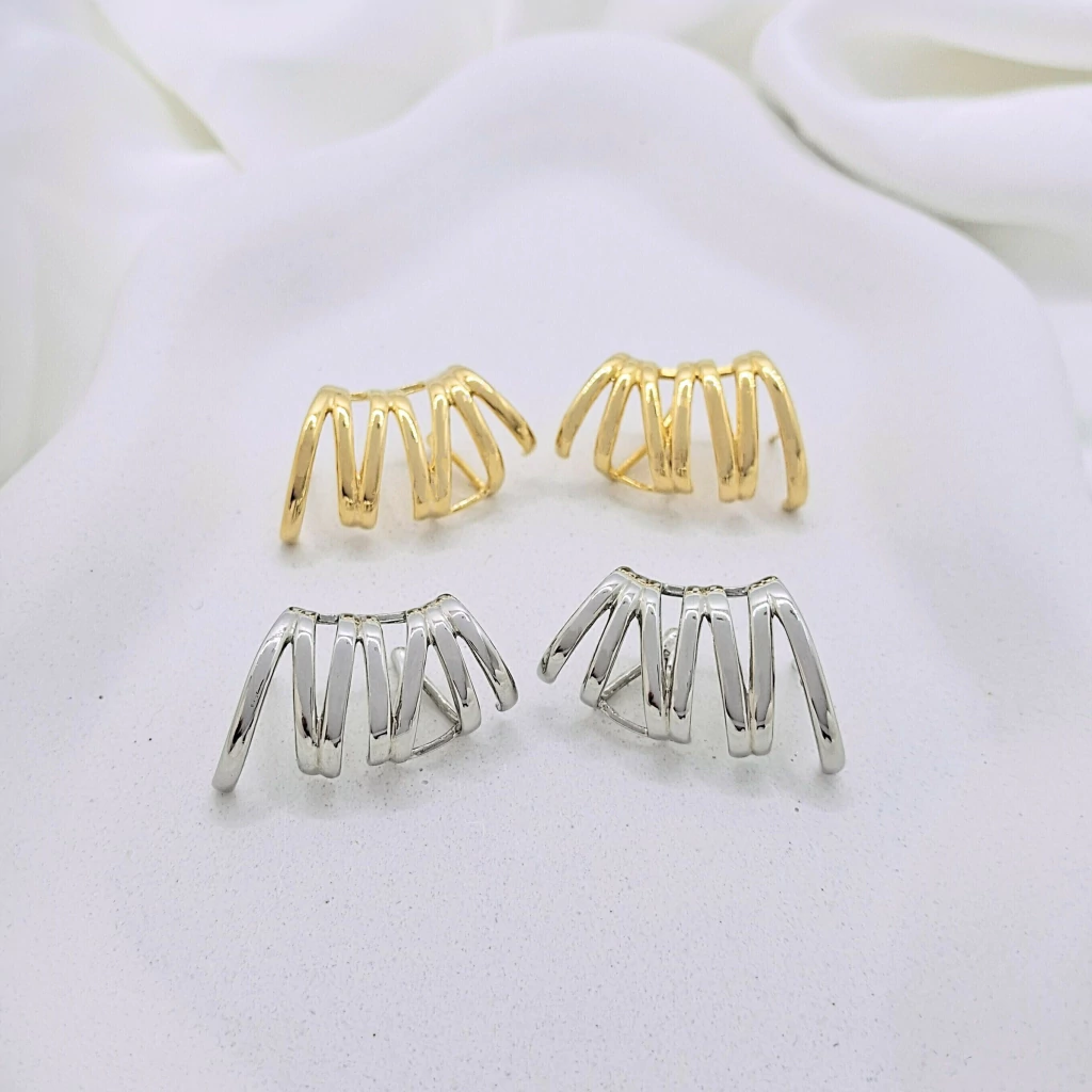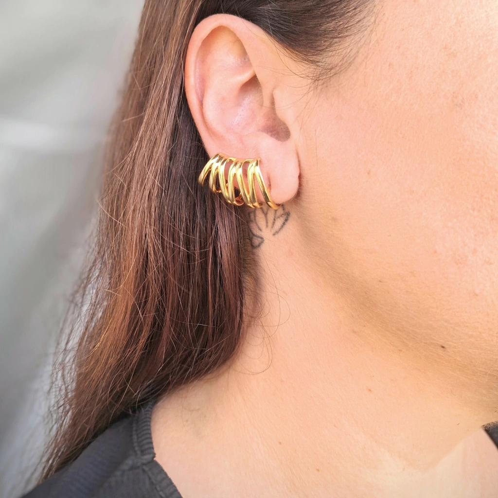 Brinco modelo ear cuff, que encaixa na orelha, banhado a ouro 18K.